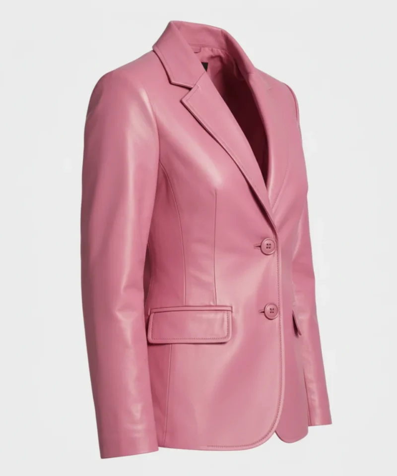 Women’s Two Button Pink Lambskin Leather Blazer