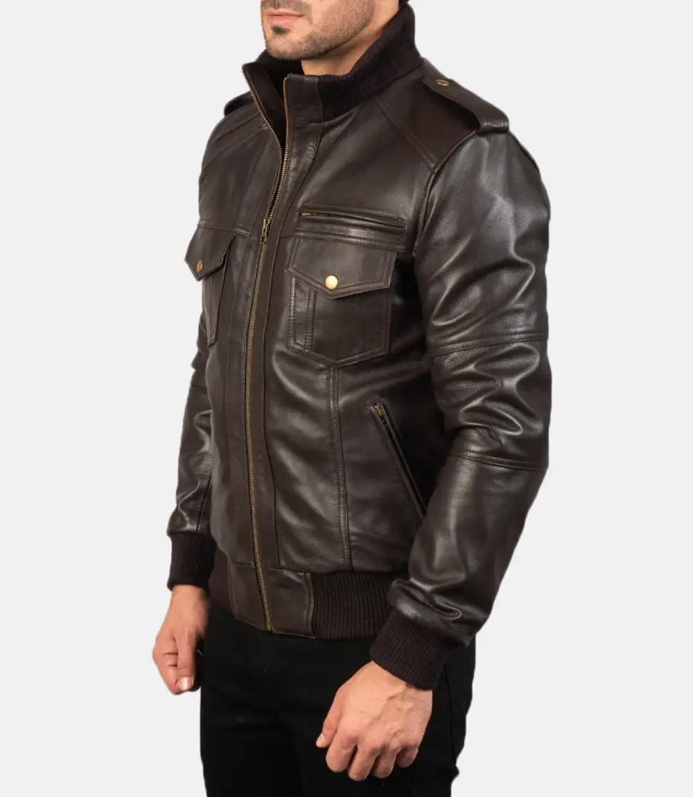 13 reviews for Men’s Agent Shadow Brown Leather Bomber Jacket