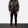 Men’s Agent Shadow Brown Leather Bomber Jacket