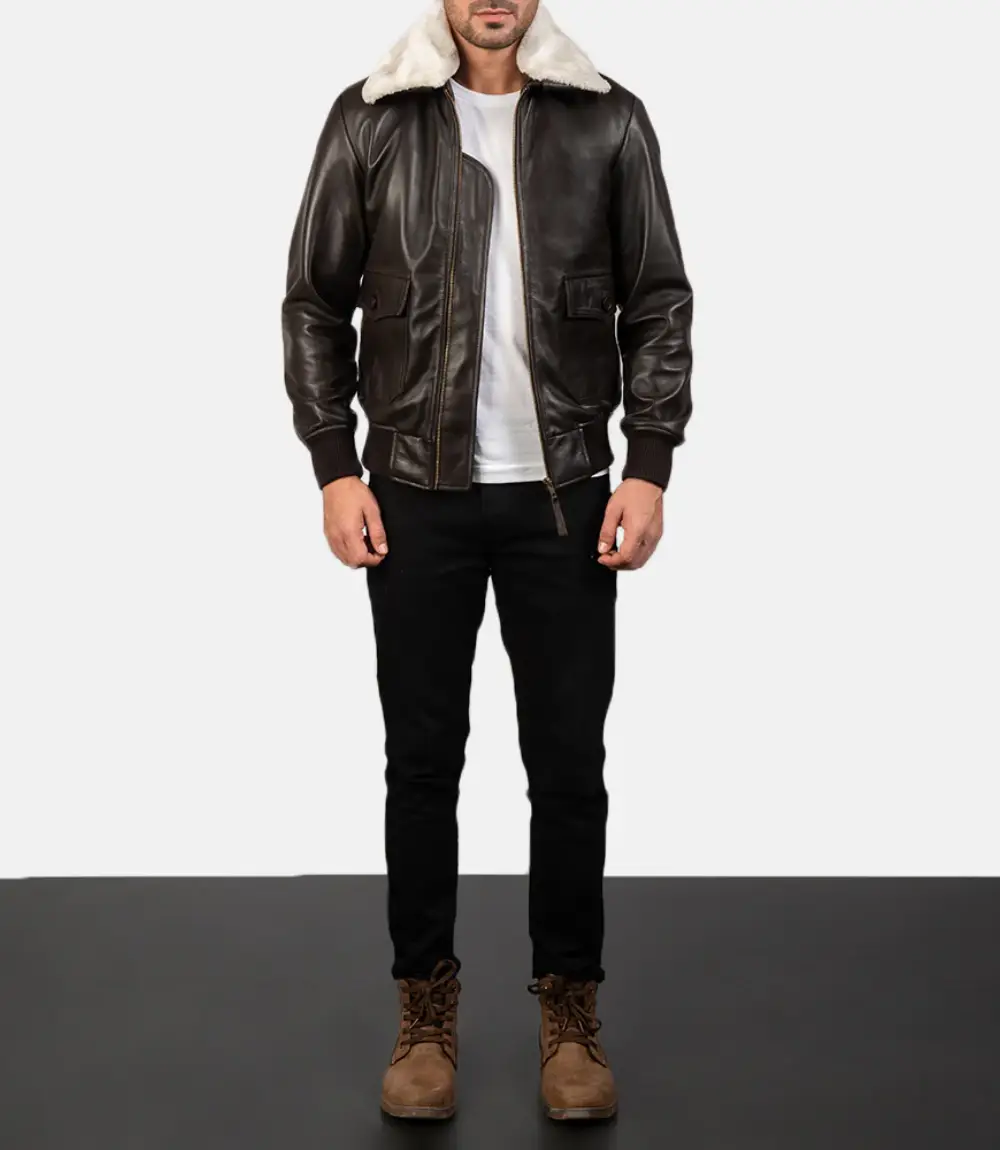 Men’s Brown Airin G-1 Leather Bomber Jacket