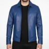 9 reviews for Men’s Blue Real Leather Harrington Jacket