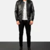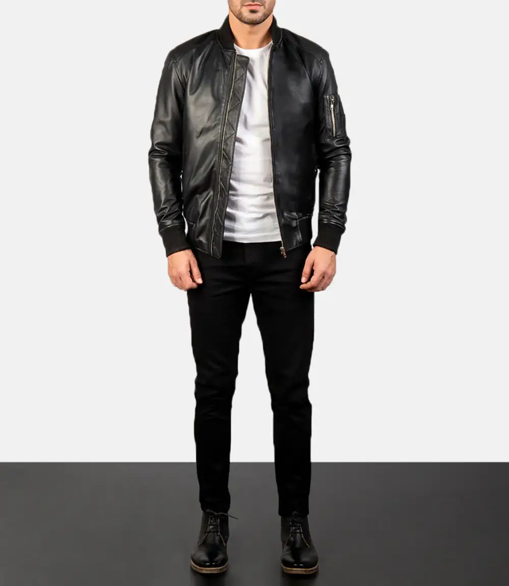 Men’s Black Bomia Ma-1 Leather Bomber Jacket