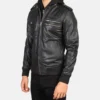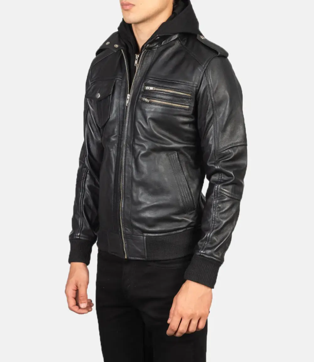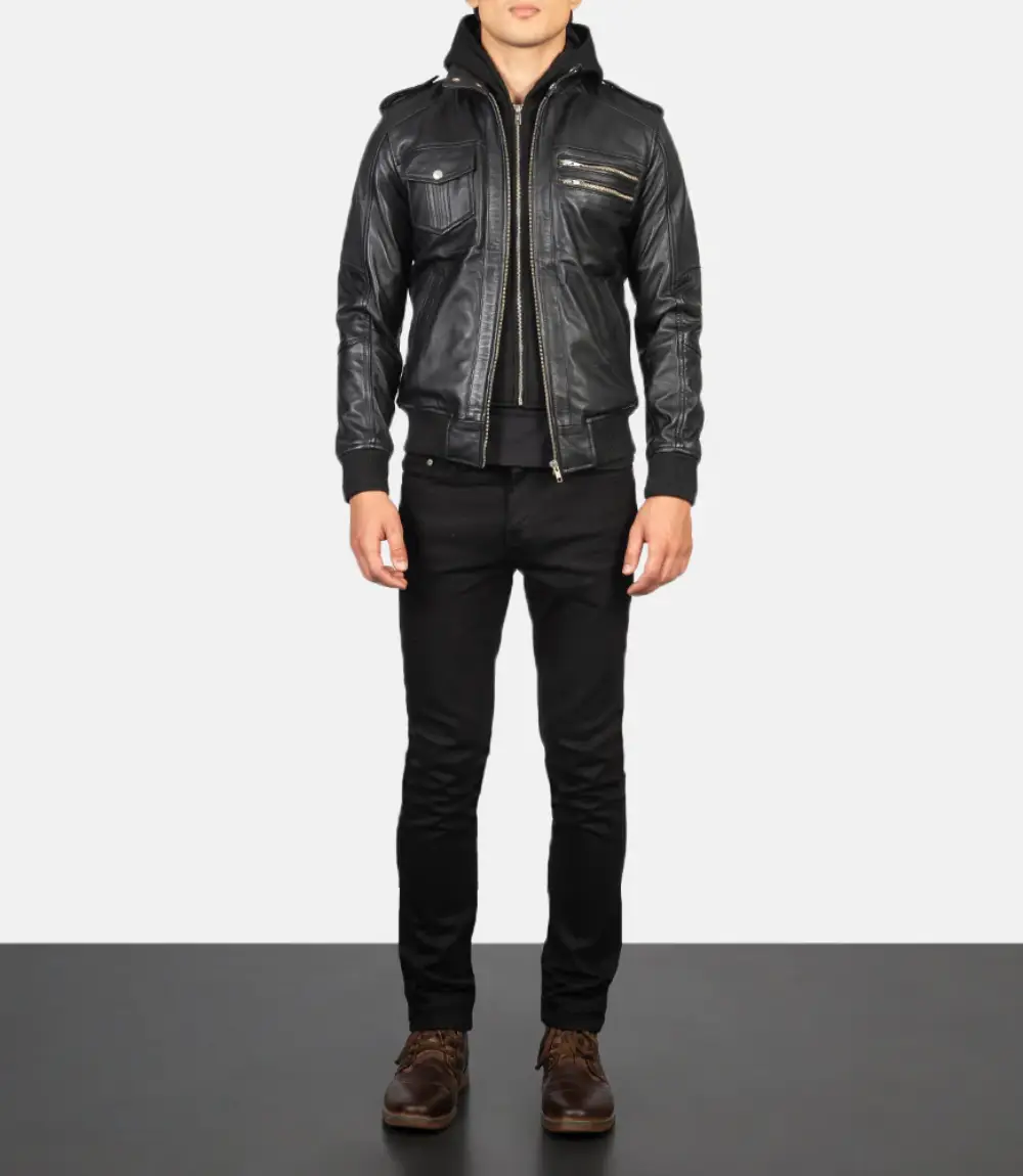 Men’s Black Bravado Hooded Leather Bomber Jacket