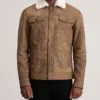 Men’s Dallis Distressed Brown Leather Shearling Trucker Jacket