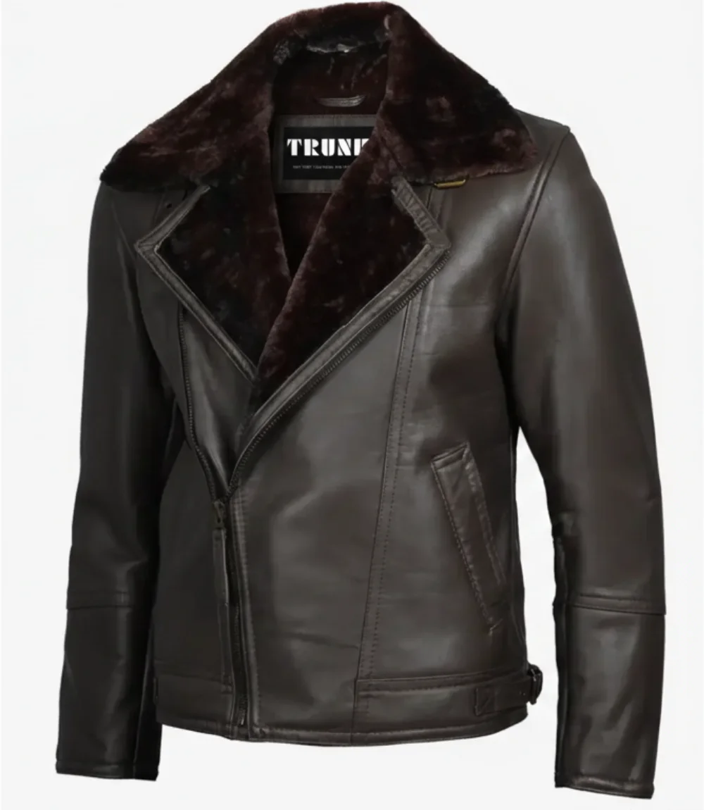 12 reviews for Men’s Dark Brown Shearling Leather Asymmetrical Moto Jacket