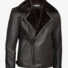Men’s Dark Brown Shearling Leather Asymmetrical Moto Jacket