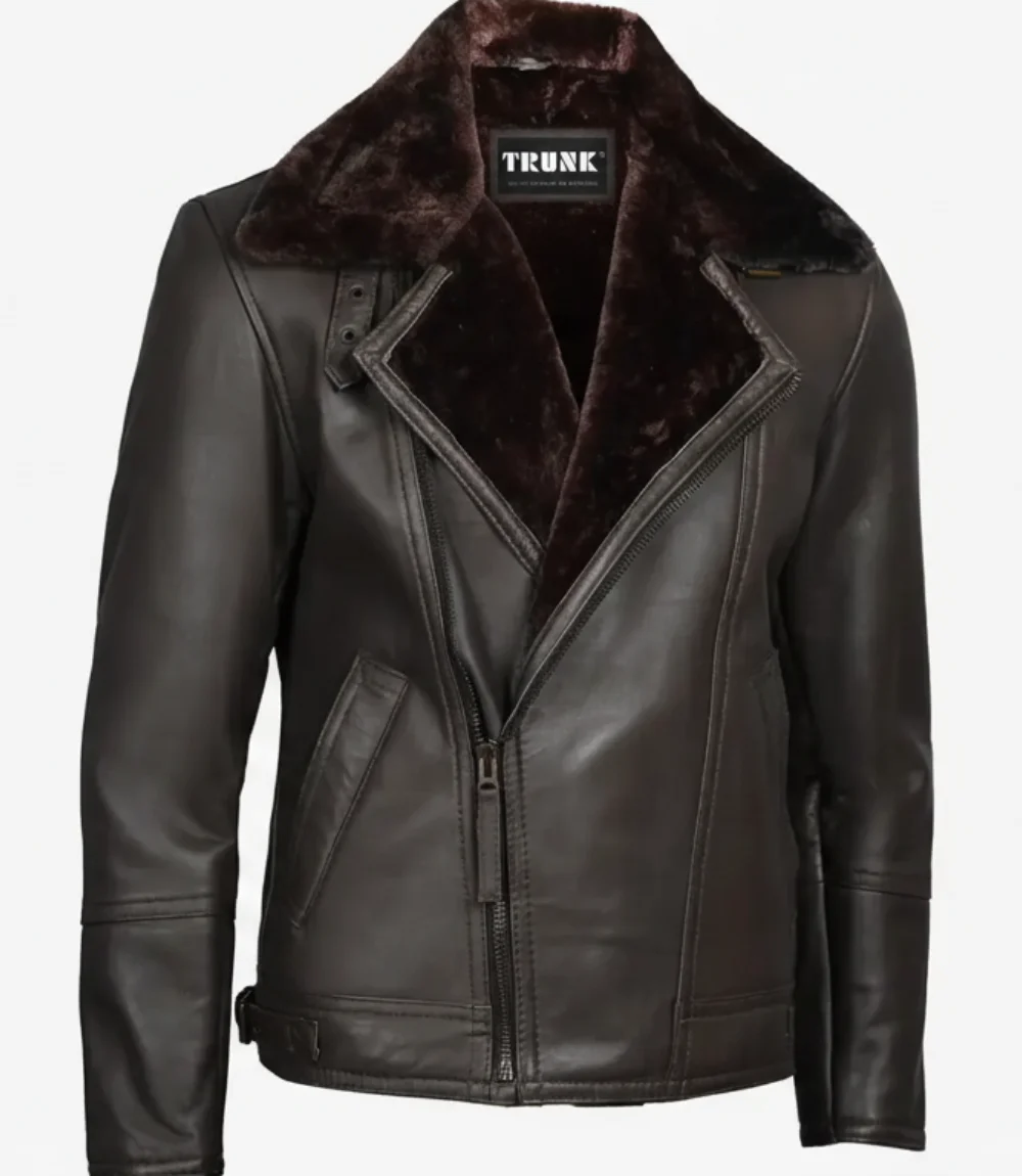 Turn heads with the Men’s Dark Brown Shearling Leather Moto Jacket, a striking combination of rugged edge and refined craftsmanship. Made from 100% real lambskin leather, it offers a smooth, supple feel with a deep dark brown finish that adds timeless sophistication.