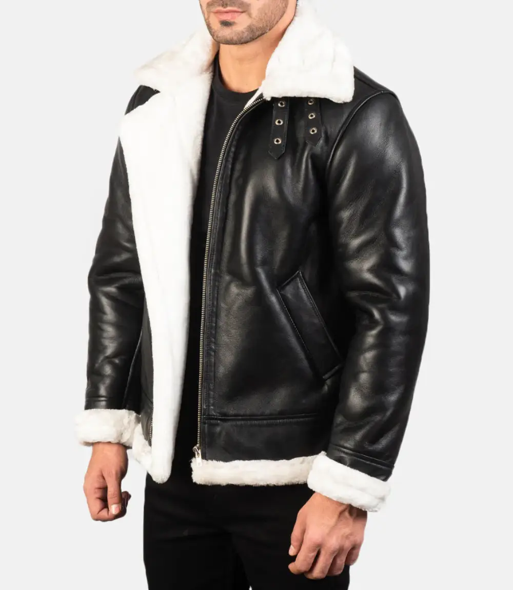15 reviews for Men’s Francis B-3 Black & White Leather Shearling Jacket