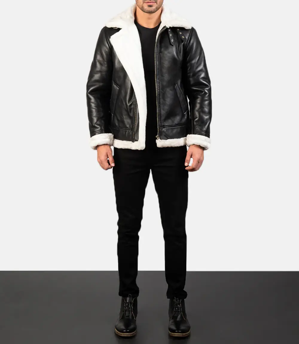 Men’s Francis B-3 Black & White Leather Shearling Jacket