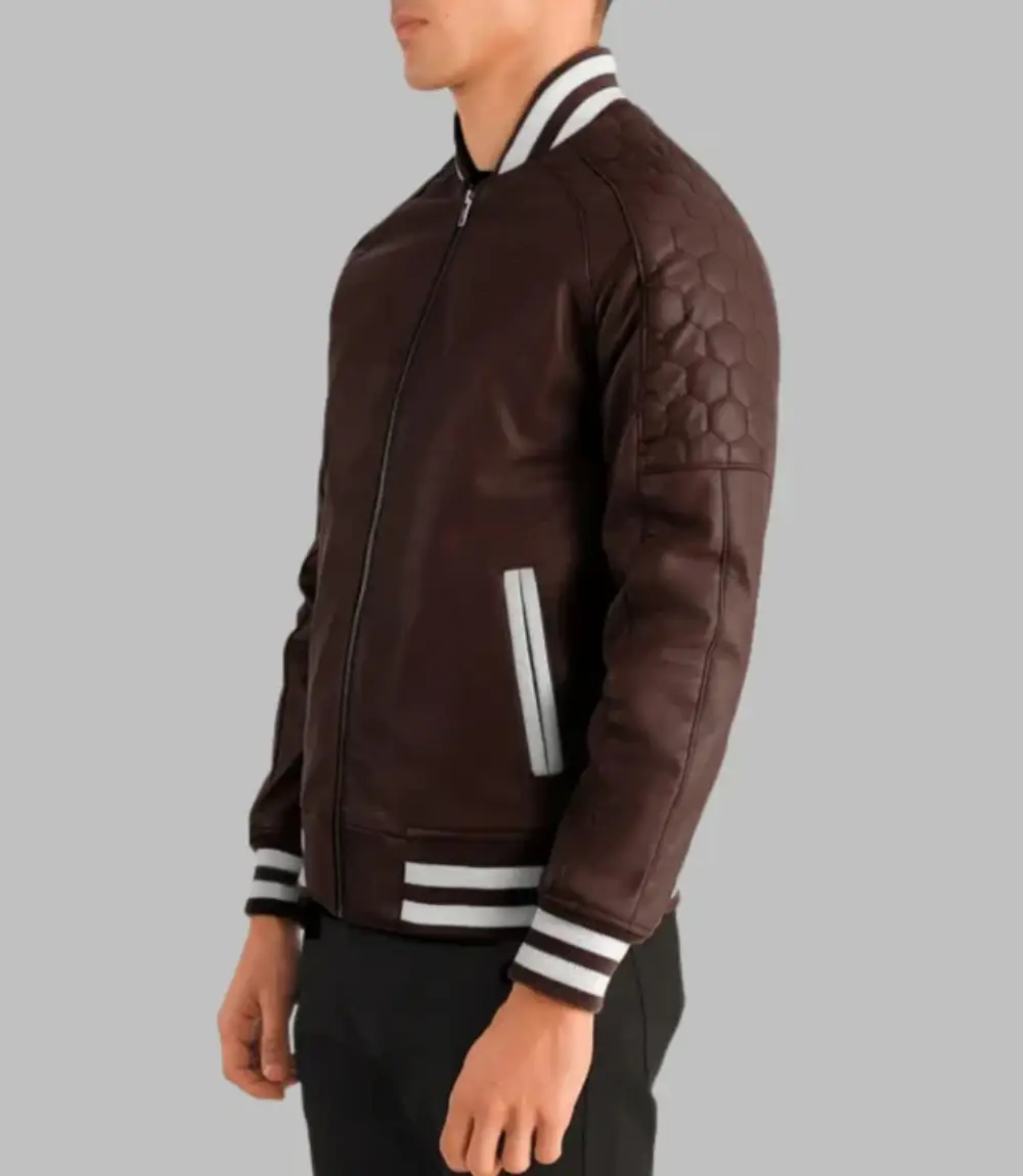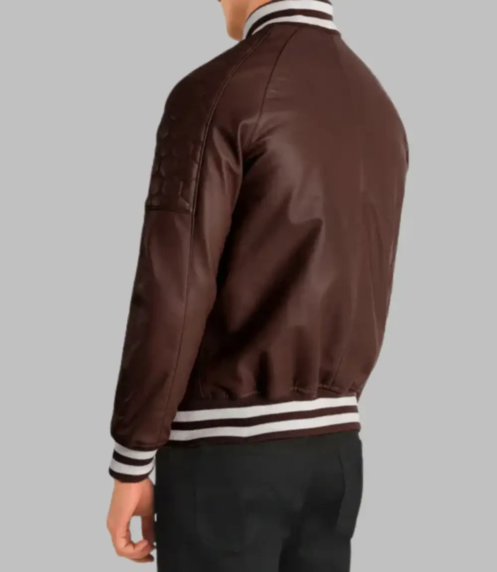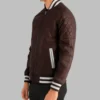 The Maroon Leather Bomber Jacket — where classic varsity energy meets modern sophistication.