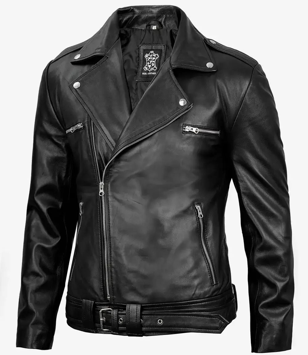 Men’s Black Negan Asymmetrical Belted Biker Leather Jacket