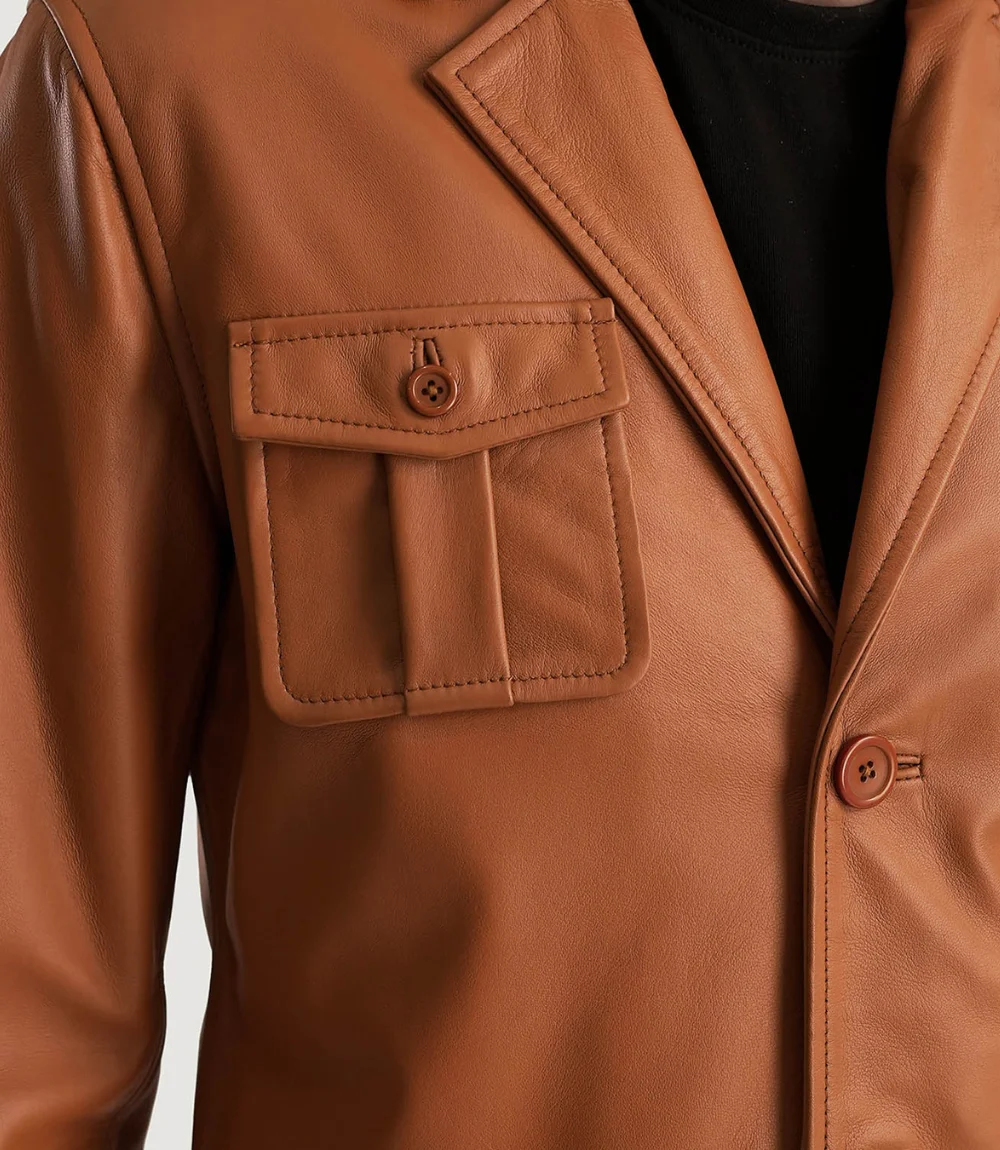 Men’s Tan Brown Ray Cutler Leather Blazer