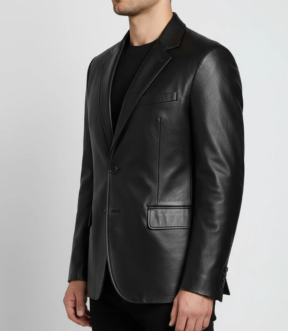 Elevate your style with the Men’s Two Button Black Lambskin Leather Blazer — a timeless classic designed for modern sophistication. Crafted from 100% genuine lambskin leather, this blazer offers a sleek, polished look that’s perfect for both formal and smart-casual occasions.