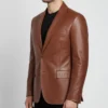 Men’s Two Button Cognac Brown Lambskin Leather Blazer