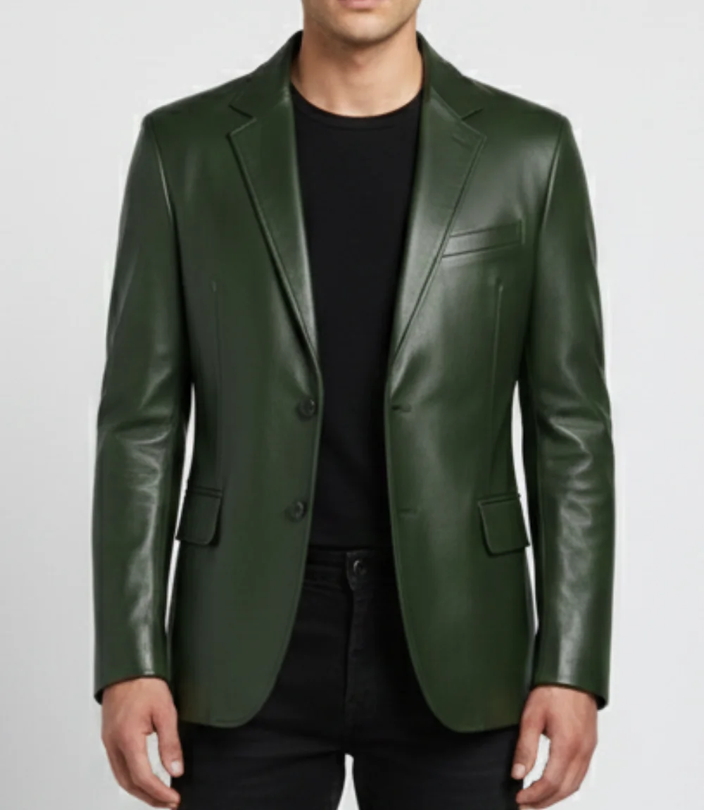 Make a powerful statement with the Men’s Two Button Green Lambskin Leather Blazer — a unique blend of sophistication and modern edge. Crafted from 100% genuine lambskin leather, this blazer offers a smooth, premium finish with exceptional softness and durability. The striking green color sets it apart, making it an ideal choice for those who want to elevate their style with confidence and individuality.
