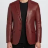 Men’s Two Button Maroon Lambskin Leather Blazer