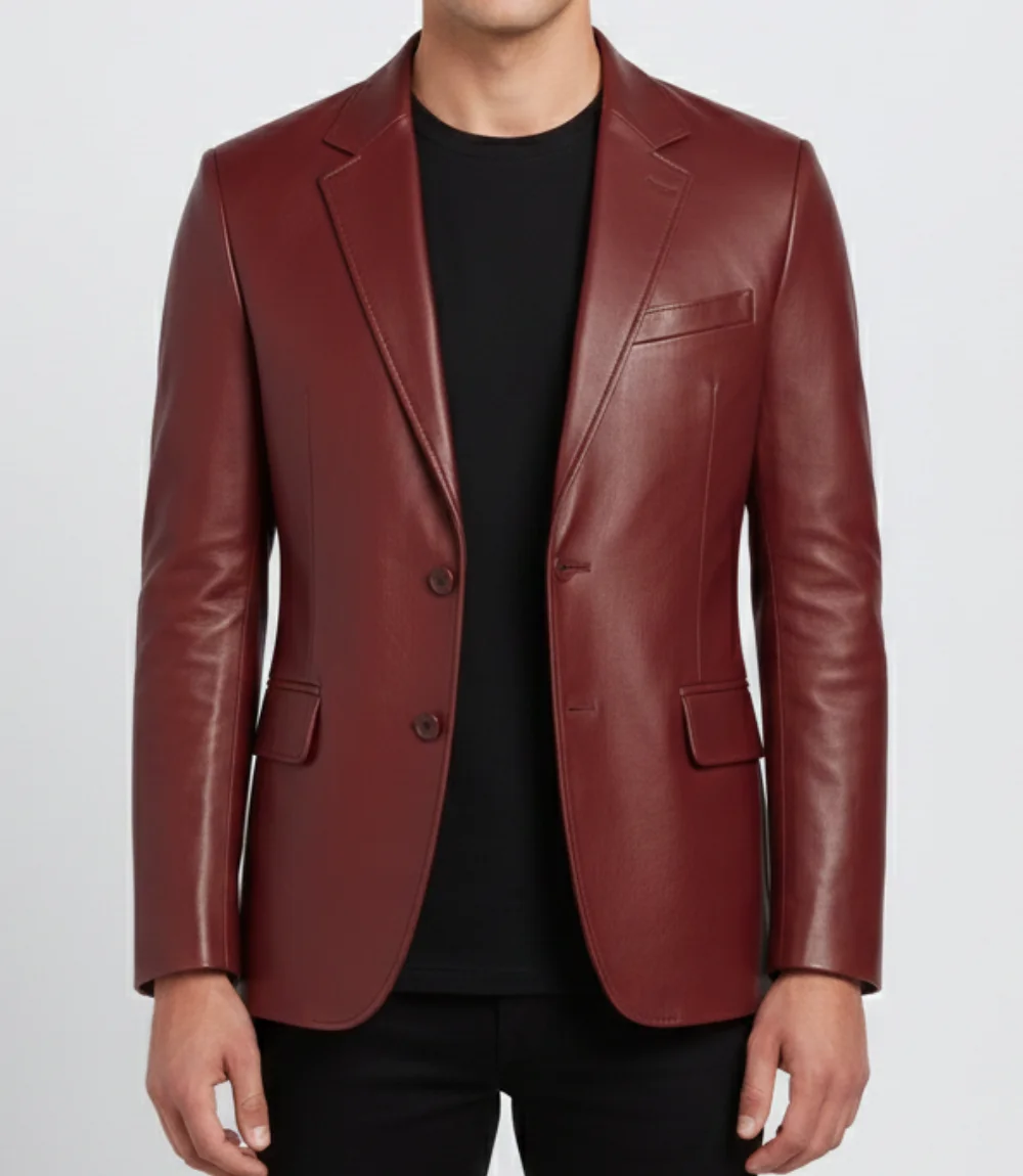 If you’re into leather jackets this maroon blazer is something different. It’s sleek, unique, and surprisingly versatile