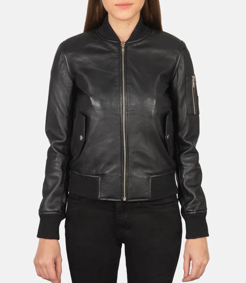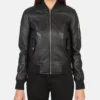 Women’s Black Ava Ma-1 Leather Bomber Jacket