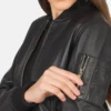 Women’s Ava Ma-1 Black Leather Bomber Jacket