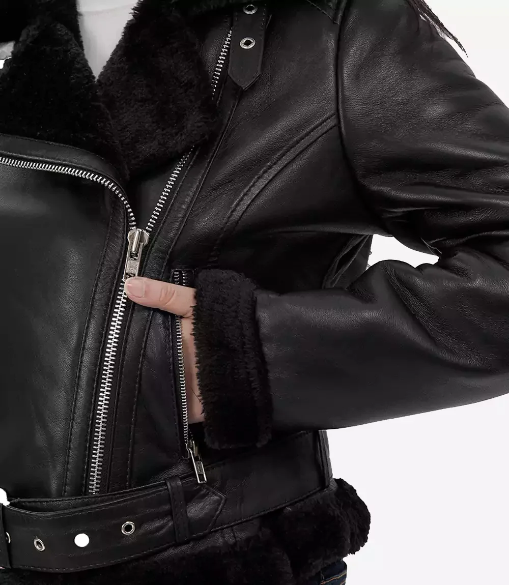 25 reviews for Women’s Black Asymmetrical Shearling Leather Jacket