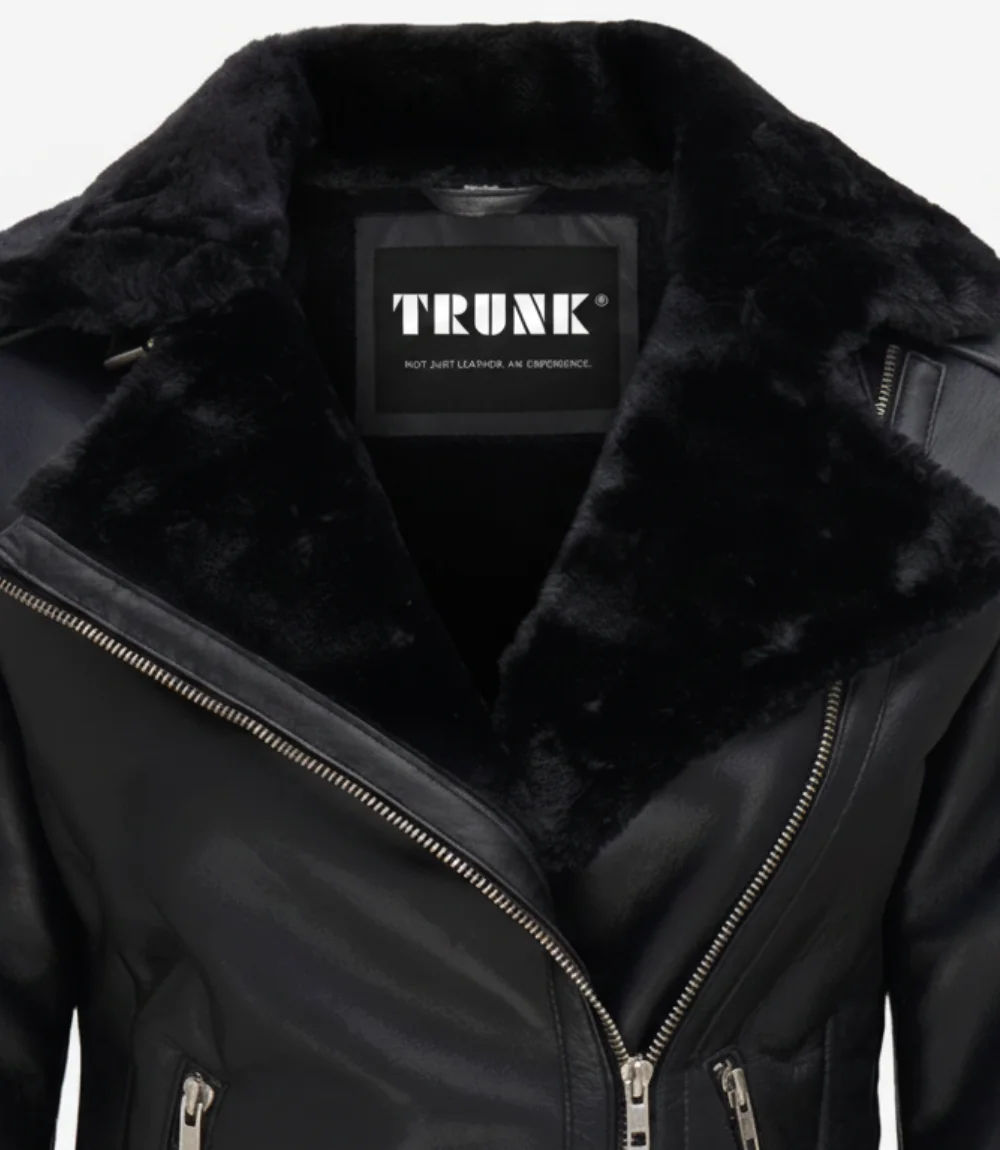 Step into the season with bold sophistication in the Women’s Black Asymmetrical Shearling Leather Jacket — a modern twist on the timeless aviator silhouette. Crafted from 100% real lambskin leather, this jacket exudes luxury while ensuring durability and comfort. The faux fur lining and cuffs provide cozy warmth, making it a perfect choice for chilly days.