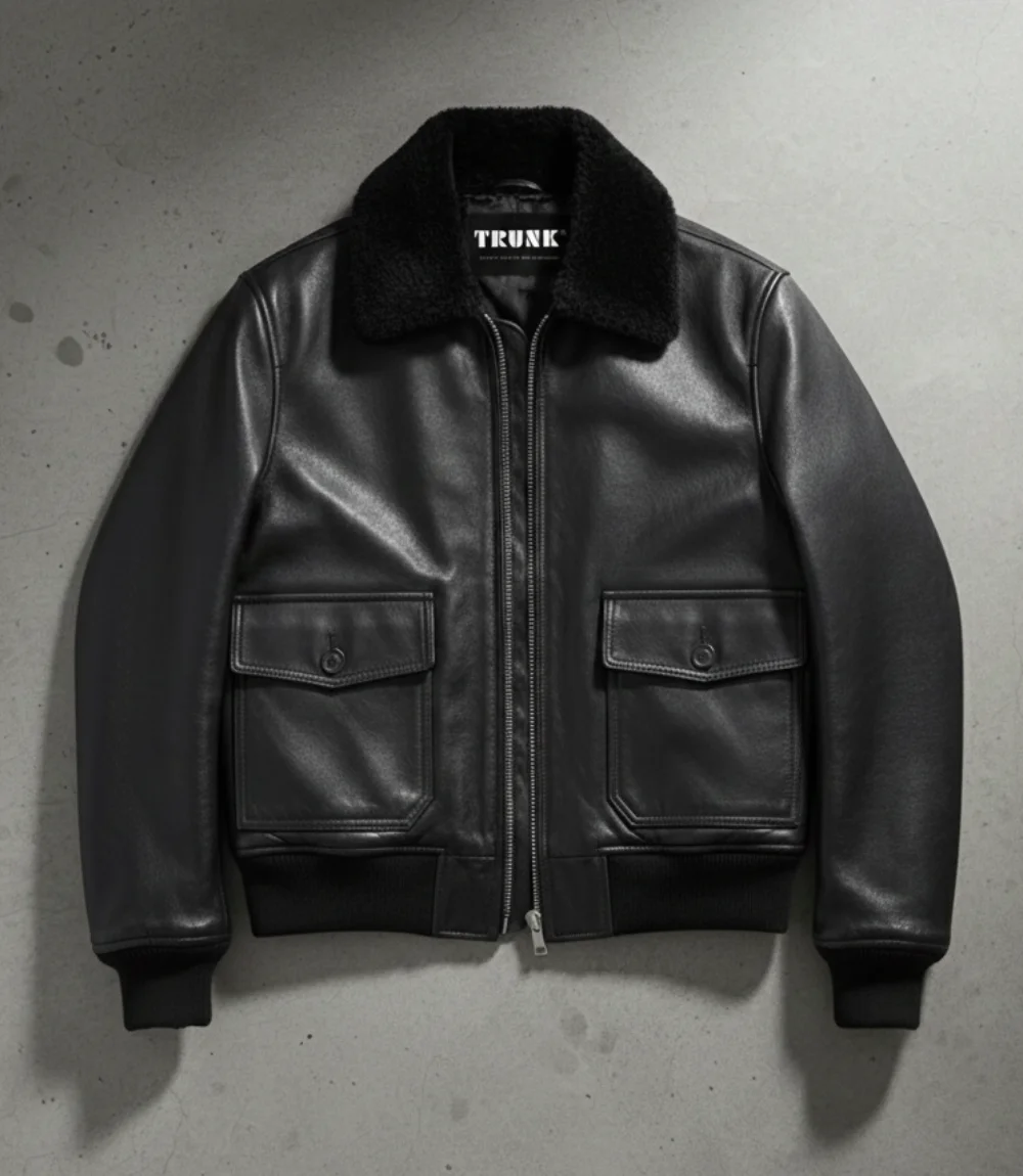 The stand-up collar, zipper front, and rib-knit cuffs give it a refined yet relaxed silhouette, while two exterior pockets and one interior pocket provide everyday convenience. The rich black tone adds warmth and vintage character, making it the perfect layering piece for any season.
