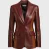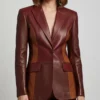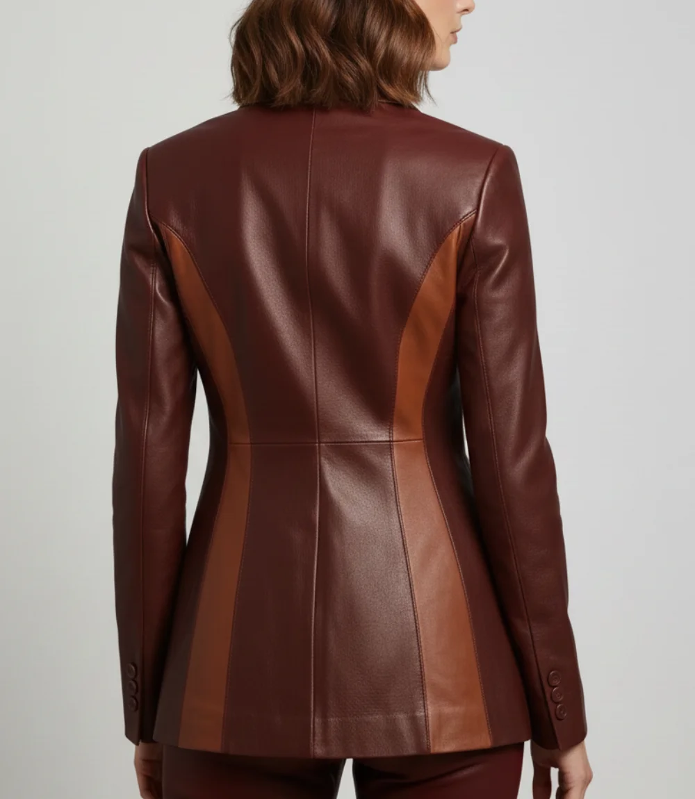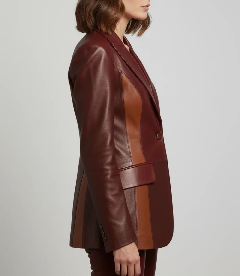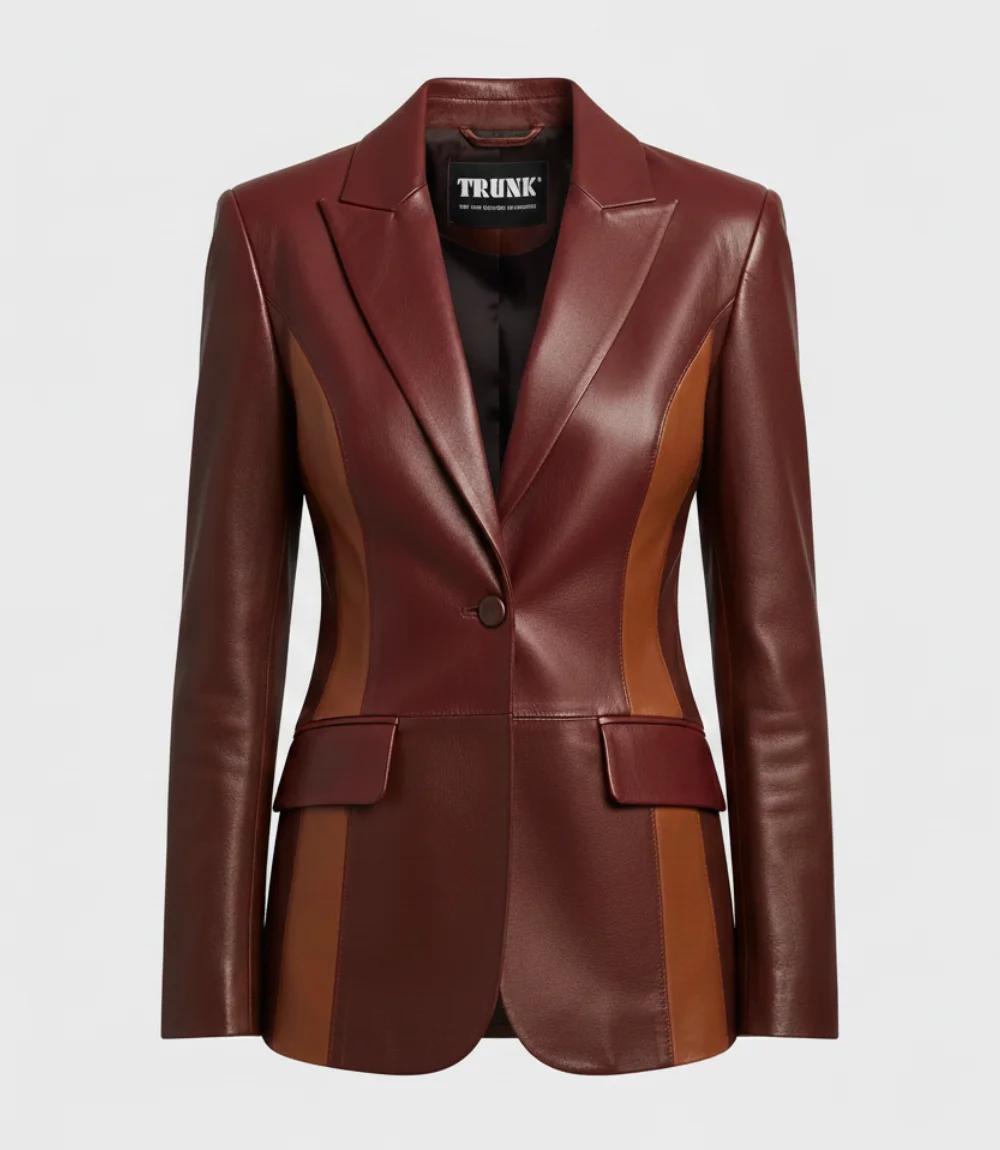 Women’s Burgundy Two Tone Lambskin Leather Blazer