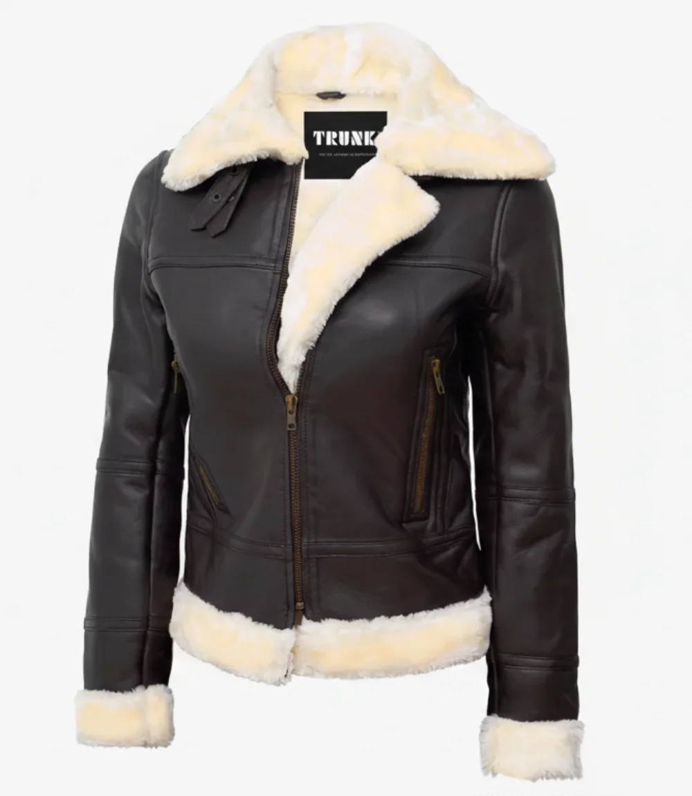 13 reviews for Women’s Dark Brown Shearling Leather Bomber Jacket