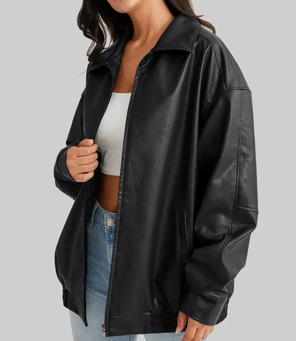 Women’s Black Emma Oversized Bomber Leather Jacket