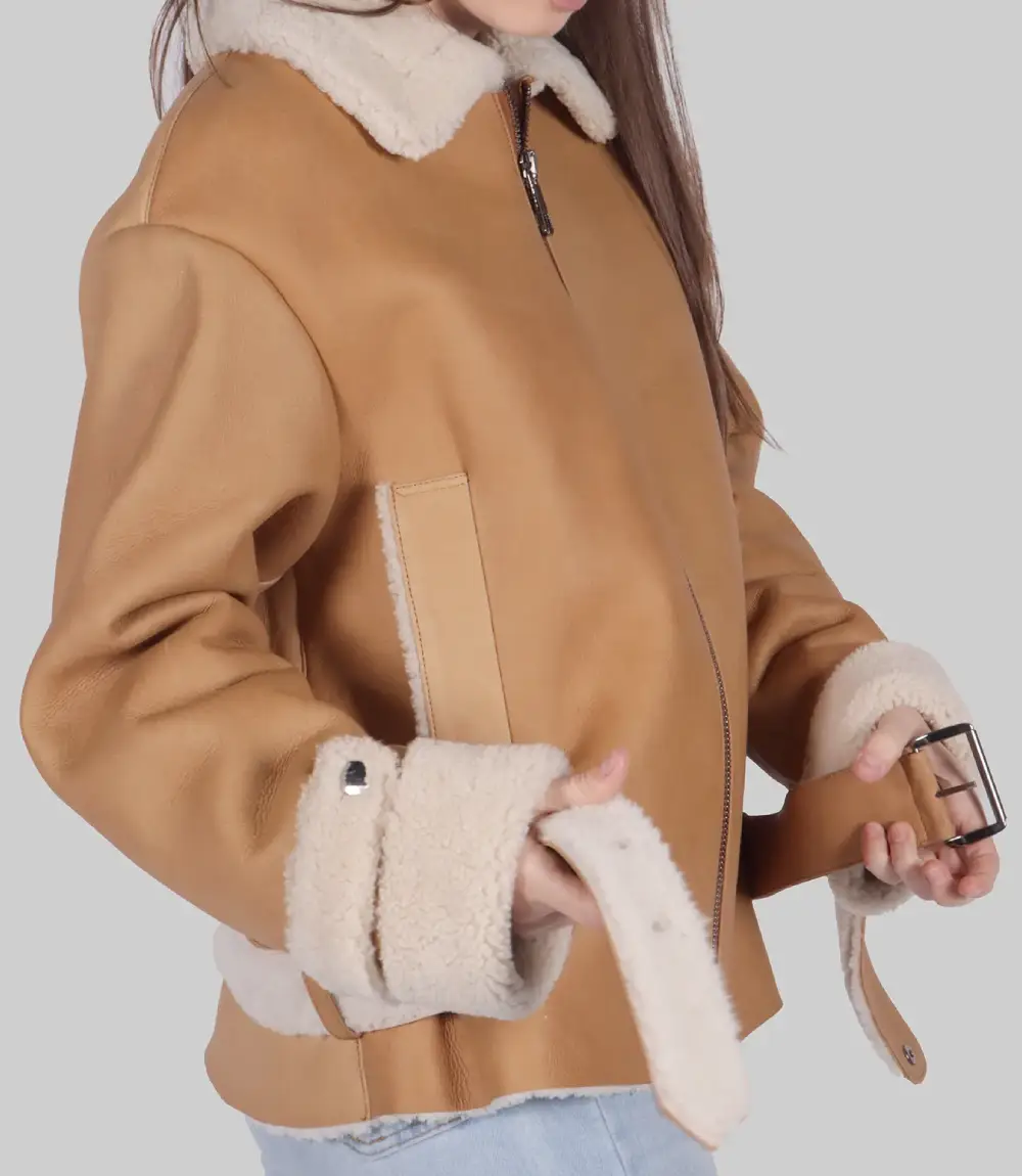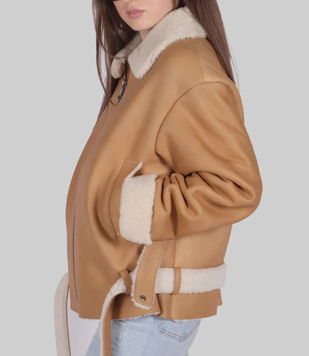Women’s Tan Jenna B-3 Bomber Leather Jacket
