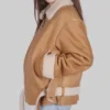 Stay warm in style with the Women’s Tan Jenna B-3 Bomber Leather Shearling Jacket. Crafted from premium lambskin leather with a soft faux fur lining, it offers luxurious comfort and a refined, timeless look.