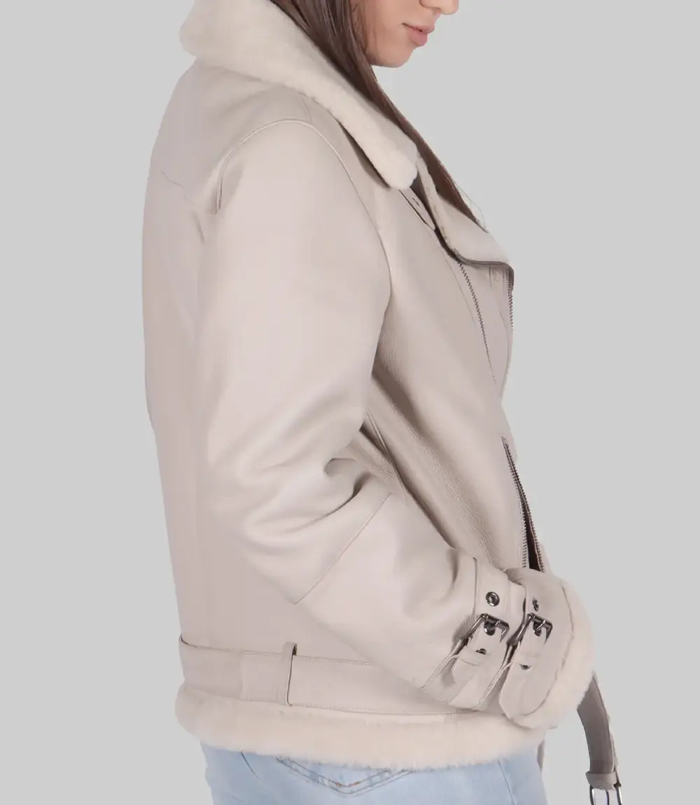 Women’s White Jenna B-3 Bomber Leather Jacket