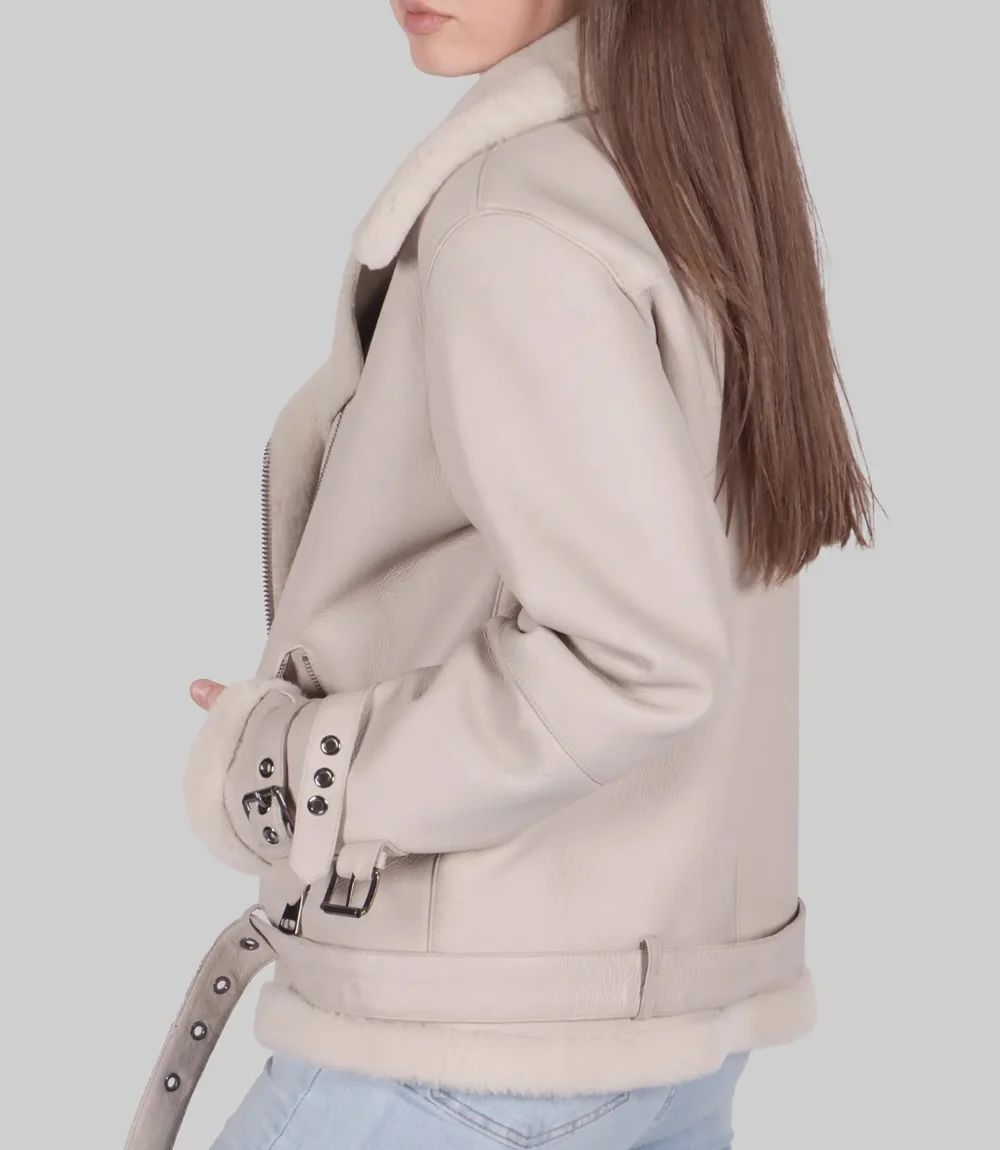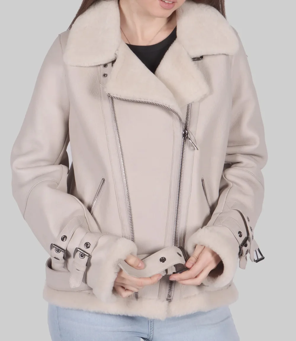 Women’s White Jenna B-3 Bomber Leather Shearling Jacket
