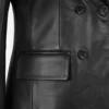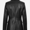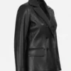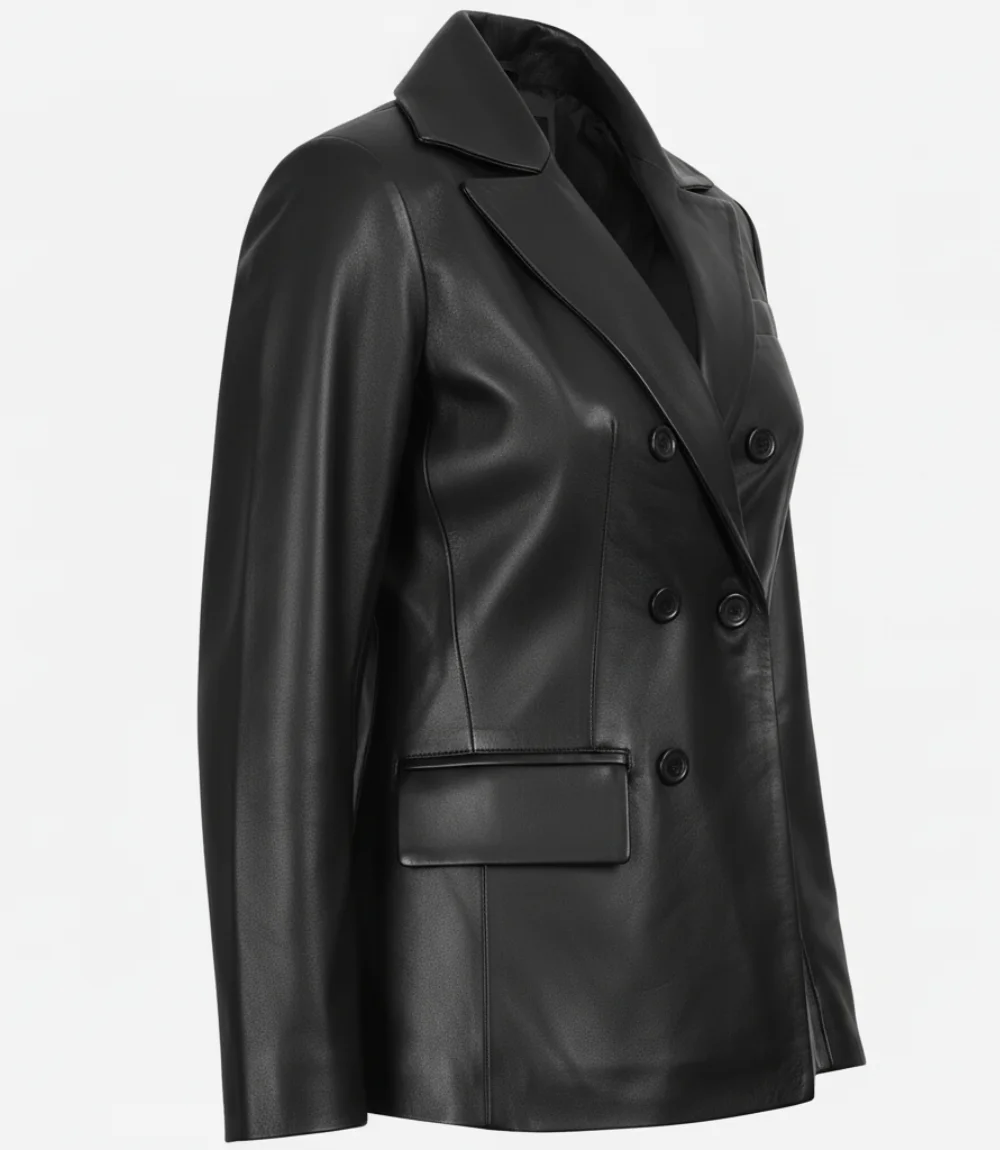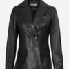 Women’s Black Notch Lapel Collar Double Breasted Leather Blazer