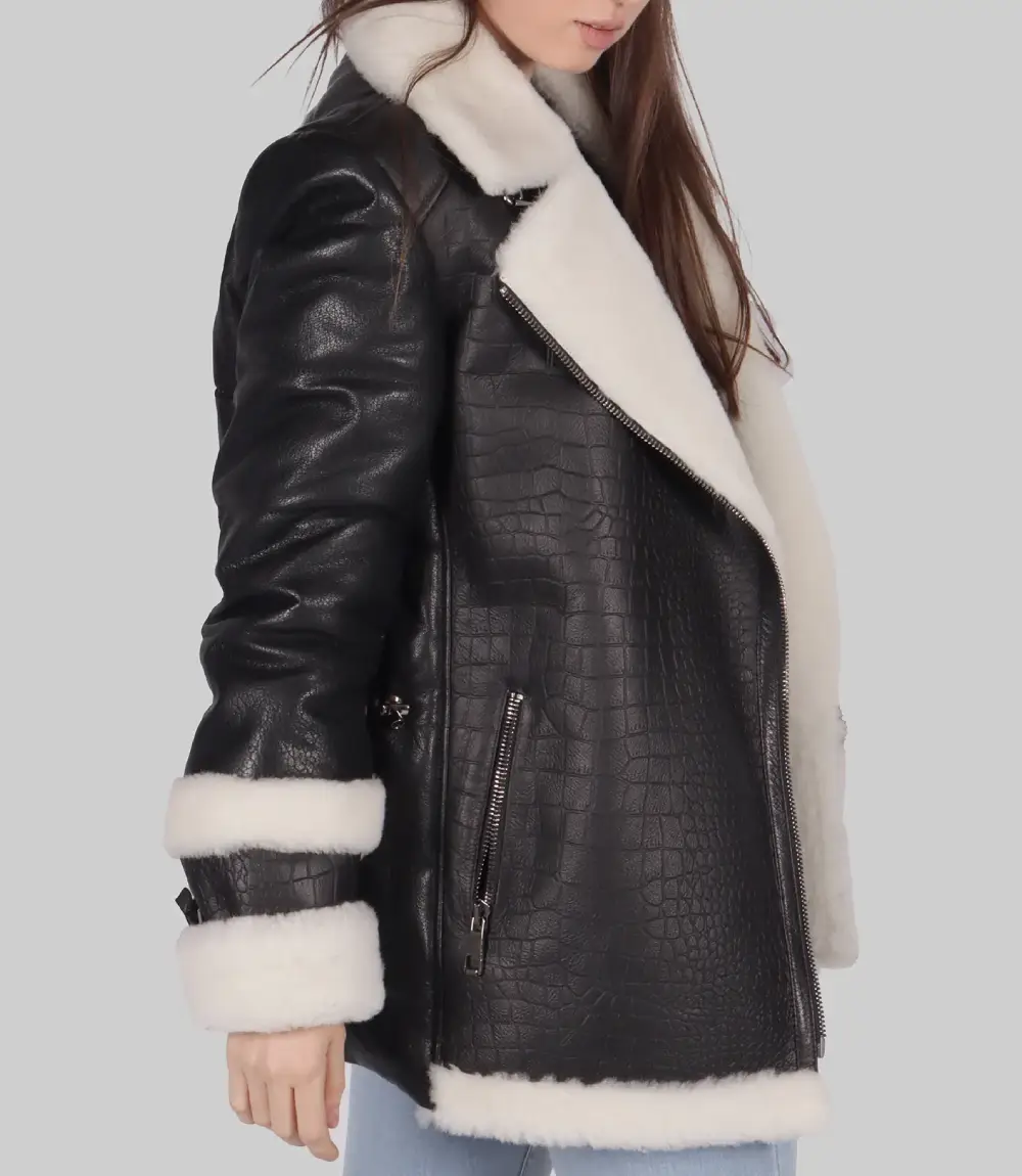 This jacket looks even better in real life. The shearling lining keeps me warm on cold nights