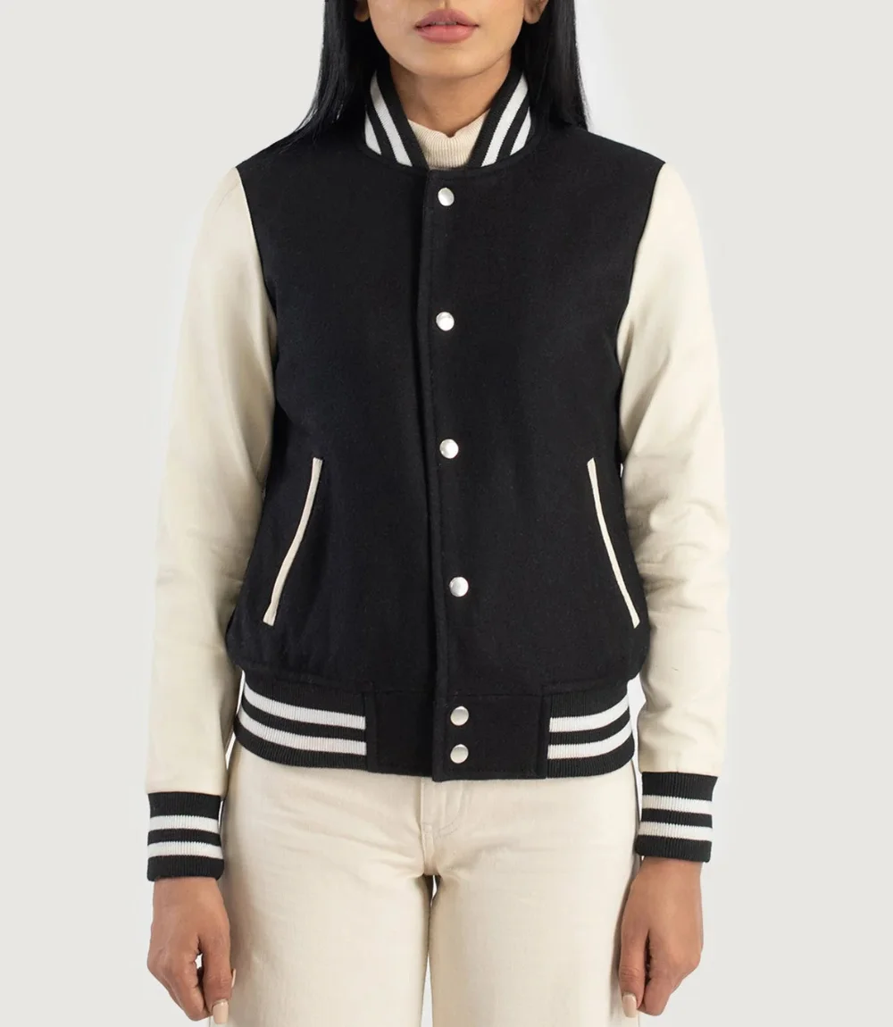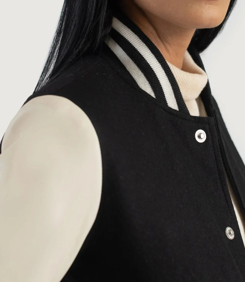 Women’s Savant Black & White Hybrid Varsity Jacket