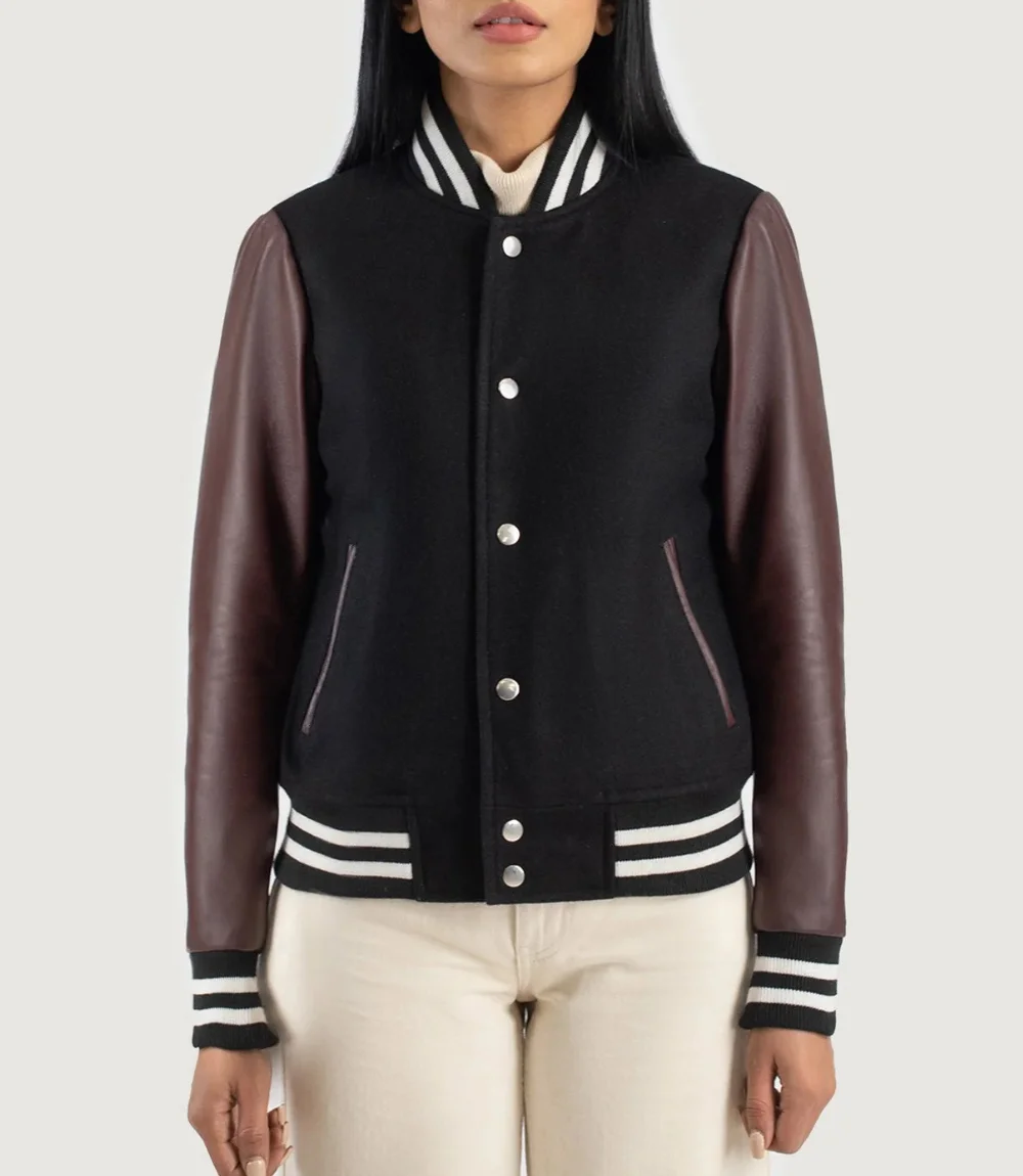 Women’s Savant Maroon & Black Hybrid Varsity Jacket