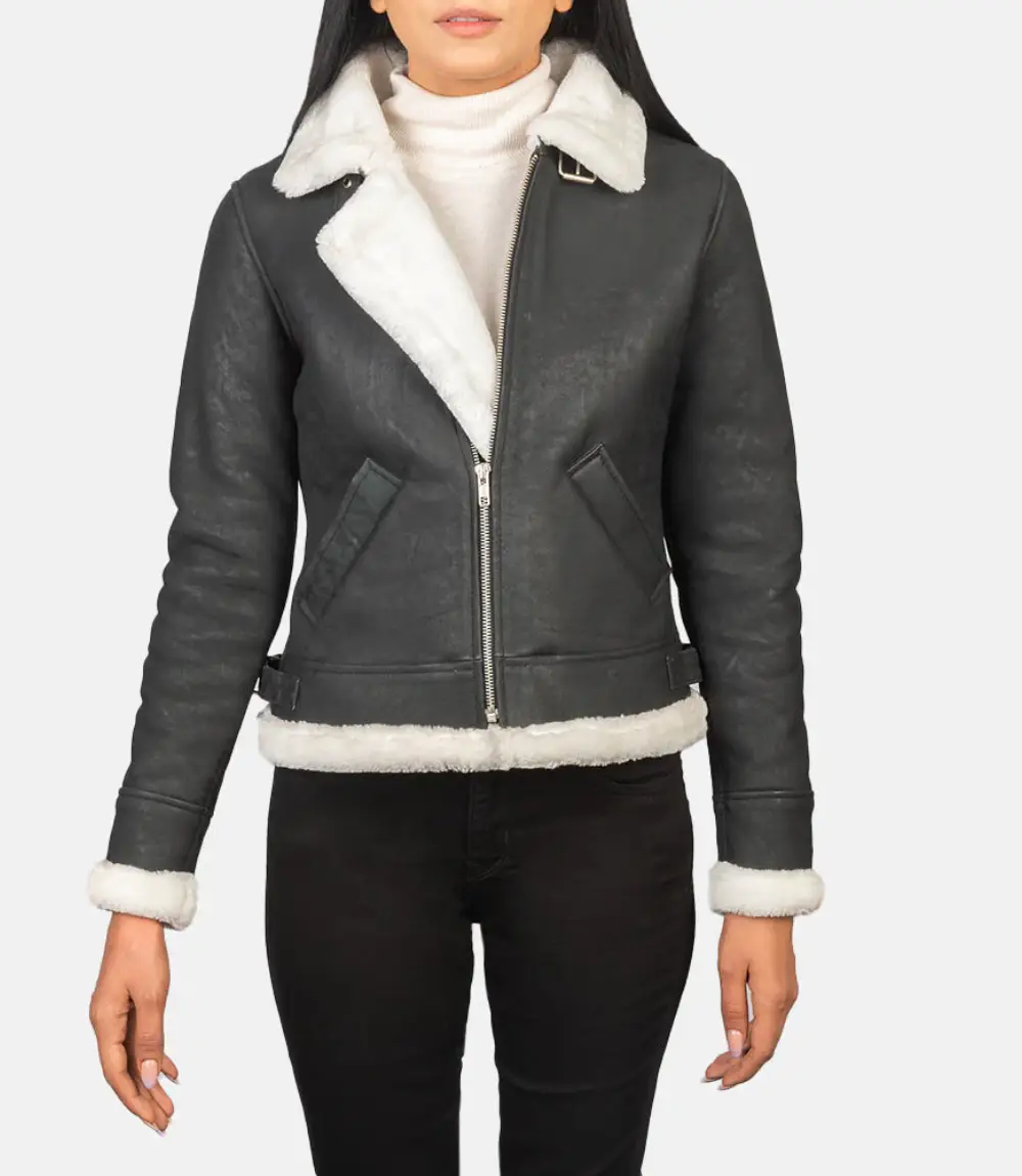Women’s Sherilyn B-3 Black & White Leather Bomber Jacket
