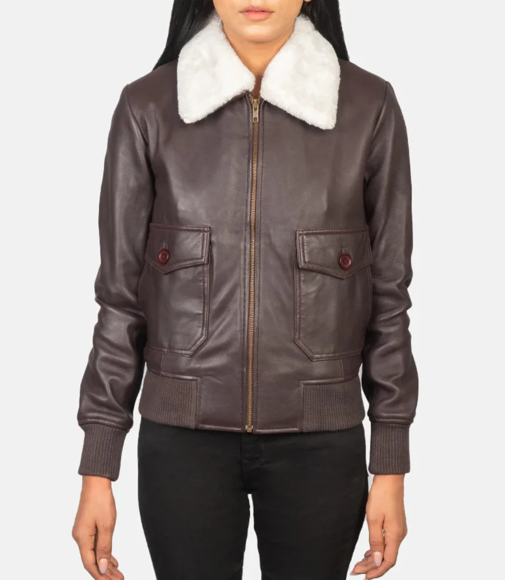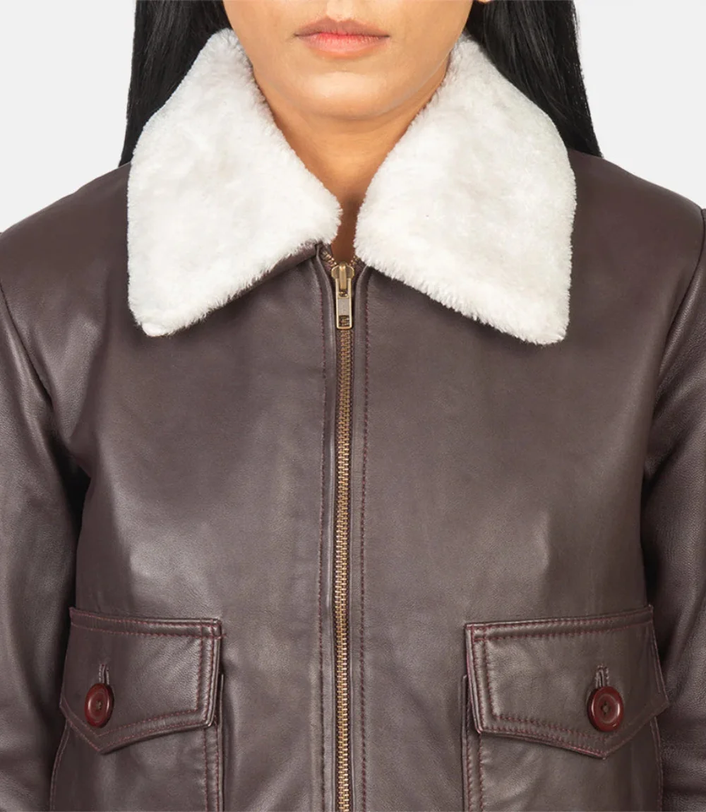 Women’s Maroon Stella G-1 Leather Bomber Jacket