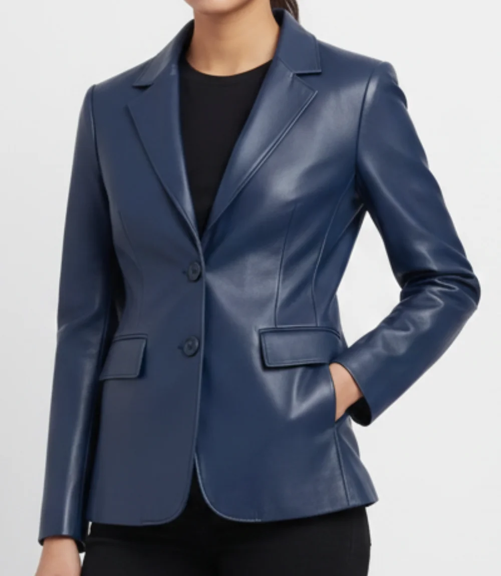Elevate your style with the Women’s Two Button Blue Lambskin Leather Blazer — a timeless blend of sophistication and modern elegance. Crafted from 100% real lambskin leather, it features a smooth, buttery-soft texture that offers both luxury and durability. The tailored fit, classic lapel collar, and two-button closure give it a structured yet effortlessly chic silhouette.