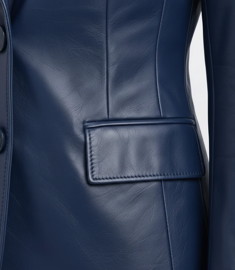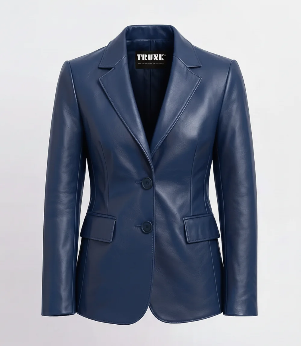 Elevate your style with the Women’s Two Button Blue Lambskin Leather Blazer — a timeless blend of sophistication and modern elegance. Crafted from 100% real lambskin leather, it features a smooth, buttery-soft texture that offers both luxury and durability. The tailored fit, classic lapel collar, and two-button closure give it a structured yet effortlessly chic silhouette.