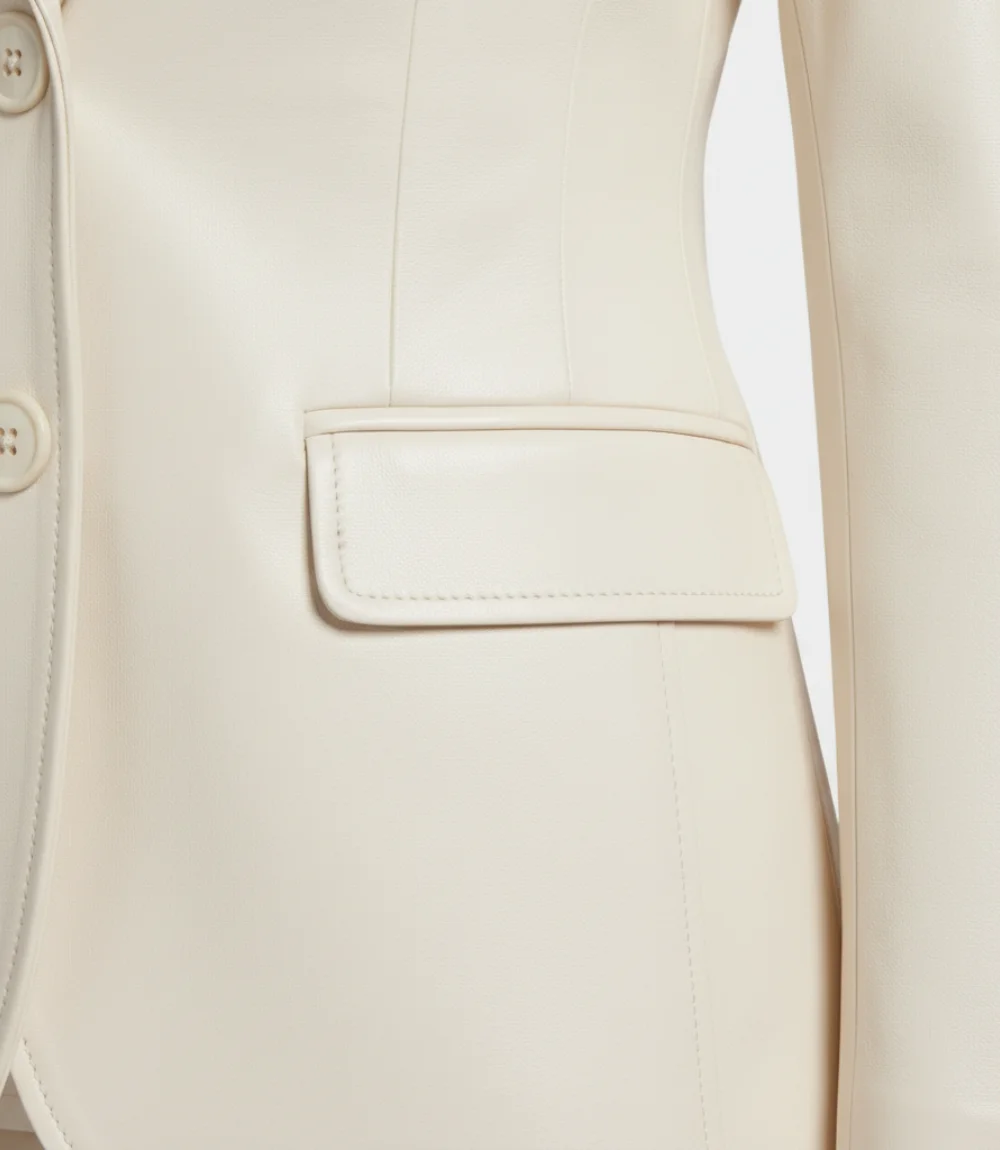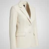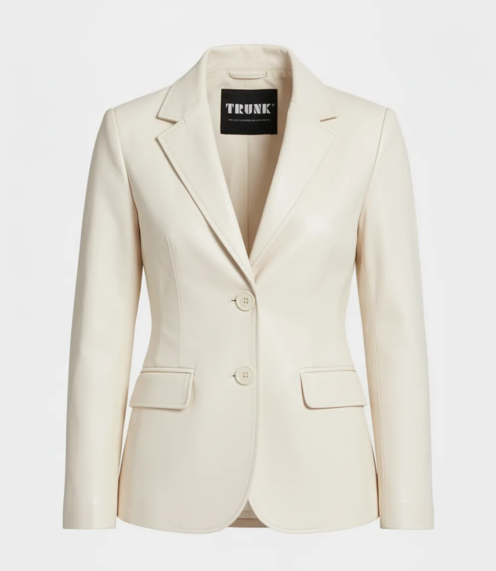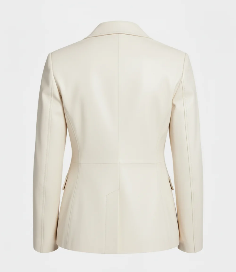 Refined, versatile, and timeless — the Women’s Two Button Off White Lambskin Leather Blazer is the perfect statement piece for a polished look. Crafted from 100% real lambskin leather, it offers a luxuriously soft feel and exceptional durability. The elegant lapel collar and buttoned closure give it a tailored silhouette that flatters any figure.