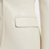 The viscose lining ensures comfort and breathability, making it ideal for all-day wear. Open hem cuffs and structured seams enhance its clean, sophisticated look. Featuring two front flap pockets and an inside pocket, this blazer balances classic elegance with everyday practicality. The soft off-white tone adds a modern, chic edge, perfect for both casual and formal styling.