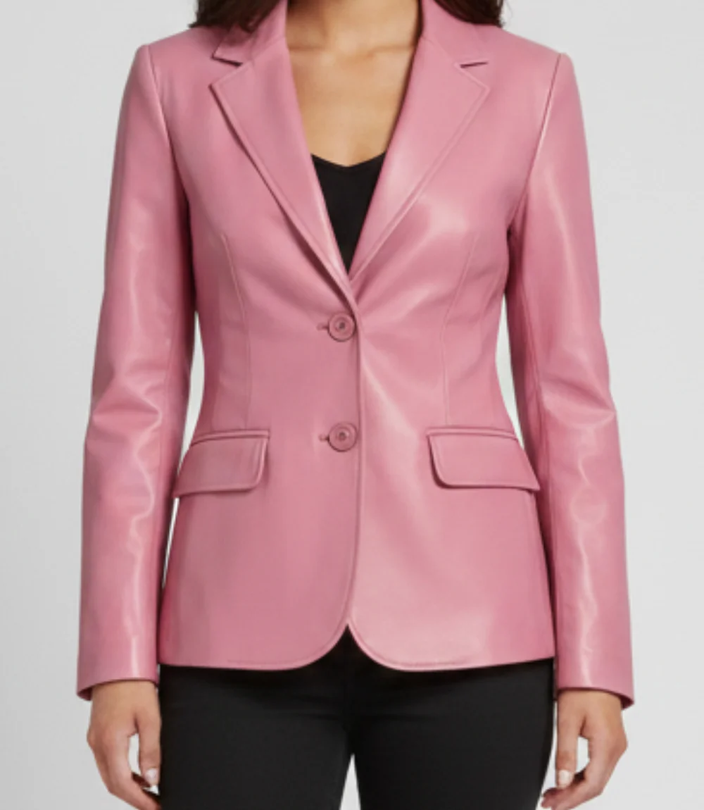 22 reviews for Women’s Two Button Pink Lambskin Leather Blazer