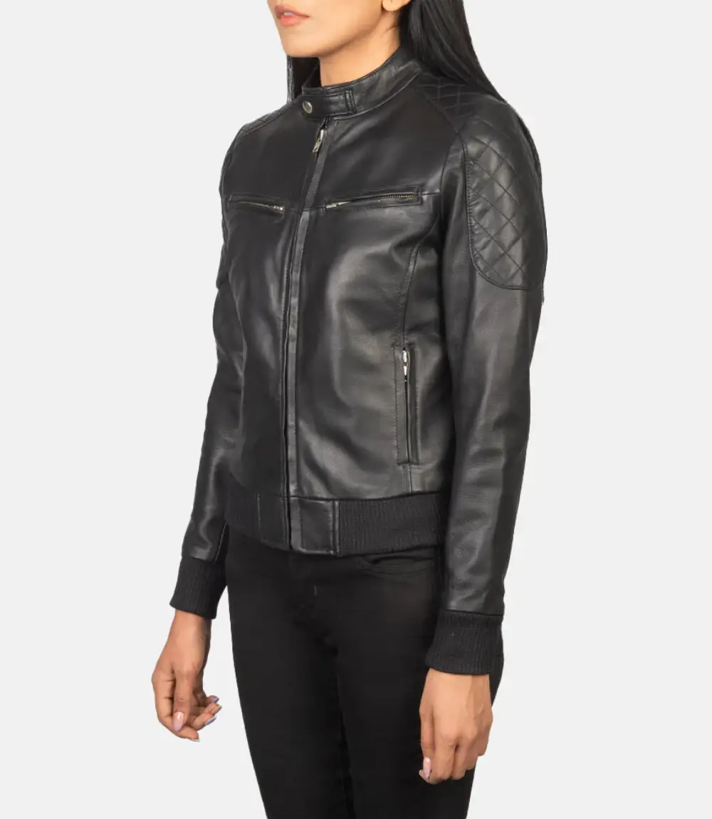 Women’s Black Zenna Leather Bomber Jacket